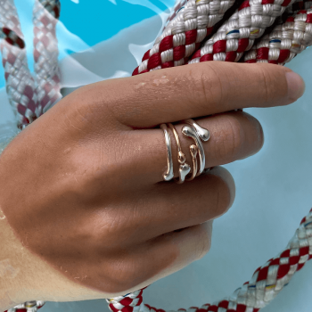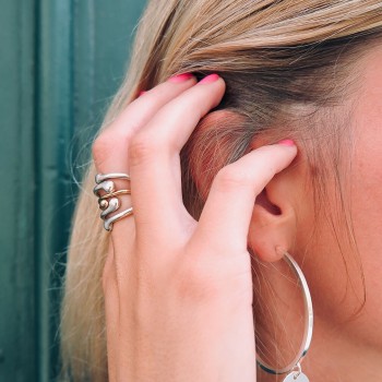 Notre Bague Milos Argent et Or Jaune est un trio de bagues aux courbes délicates et raffinées dont une en or jaune 18 carats et deux en argent massif. Baptisées comme l'île grecque Milos de l'archipel des Cyclades, ces bagues sont disponibles en plusieurs combinaisons : tout en or, tout en argent ou en association or et argent.