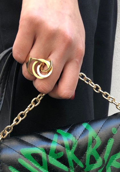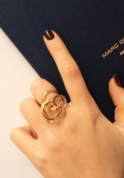 Notre Bague Saturne Or Jaune séduit par son design céleste et son allure équilibrée. Composée de trois anneaux entrelacés, elle évoque les majestueux anneaux de la planète éponyme. Ses lignes fluides et son éclat raffiné en font une création contemporaine, symbole d’harmonie et de mouvement éternel.
