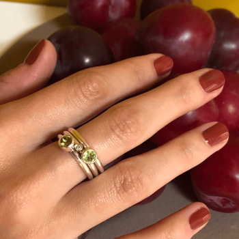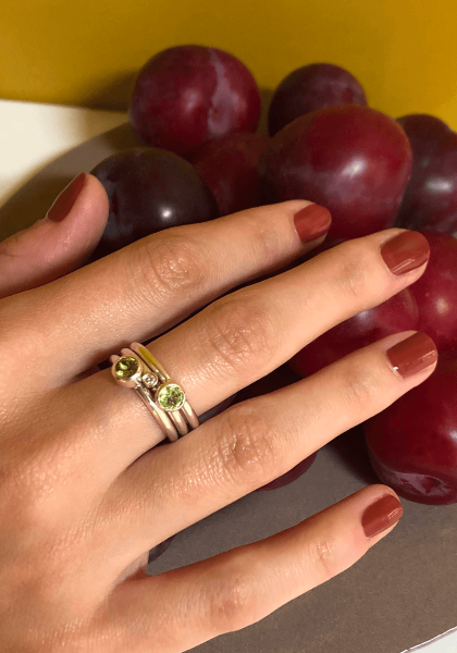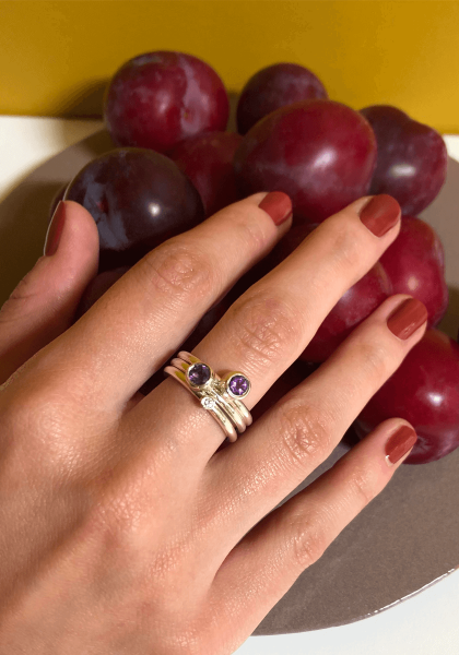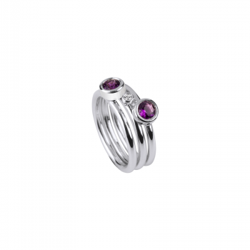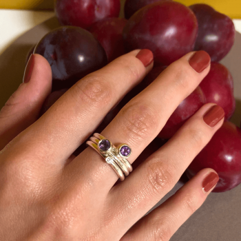 Notre Ensemble de Bagues Seven 3 pierres est composée de trois bagues distinctes de type jonc. Deux d'entre elles sont ornées d'une pierre de couleur de votre choix chacune et la troisième présente un diamant.