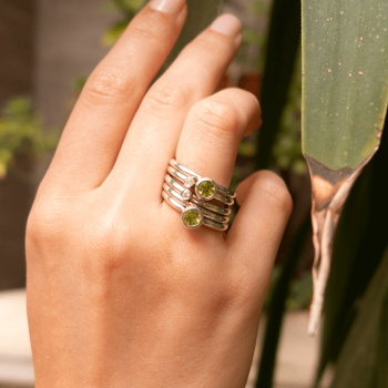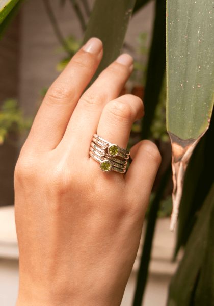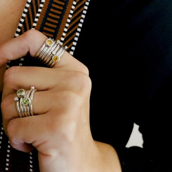 Notre Ensemble de Bagues Seven 5 pierres est composée de cinq bagues distinctes de type jonc. Deux d'entre elles sont ornées d'une pierre de couleur de votre choix chacune et les trois autres présentent un diamant chacune.