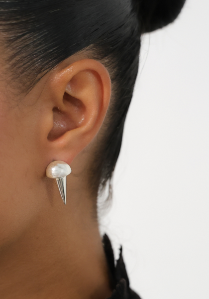 Le clou effilé, véritable signature de la Collection Clous, s’élance sous une boule polie qui adoucit la ligne et capte la lumière avec élégance.