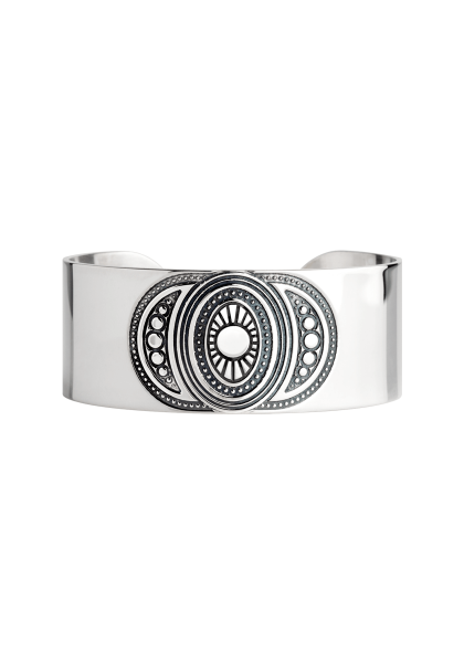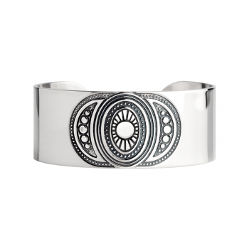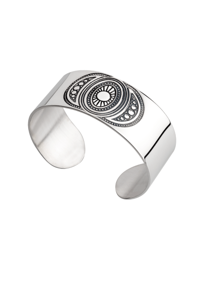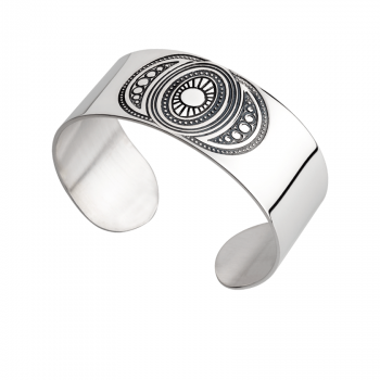 Changez complètement de décor avec notre Manchette Austin Petit Modèle. On y retrouve un motif unique aux inspirations amérindiennes, afro-américaines et hispaniques sur un jonc plat ouvert.