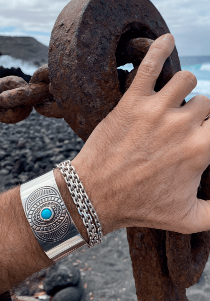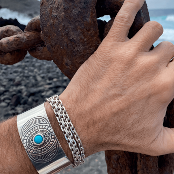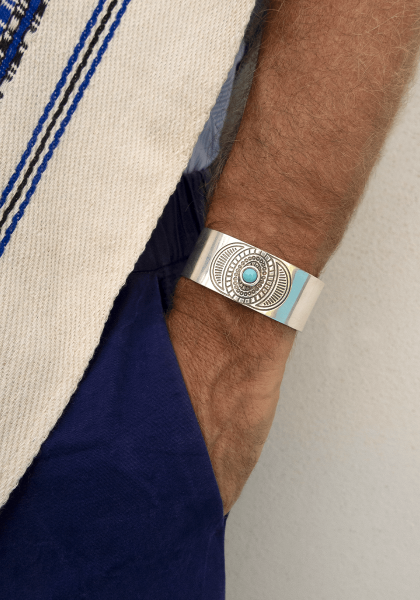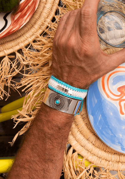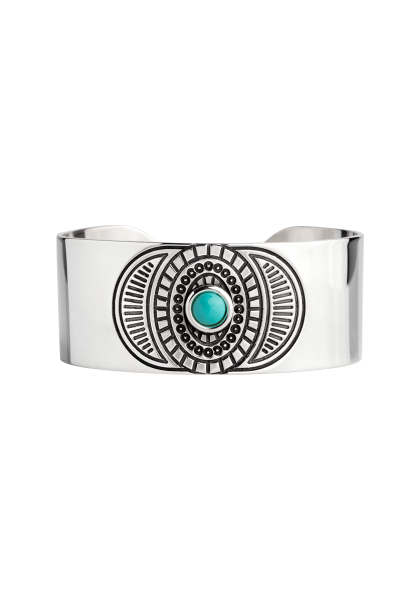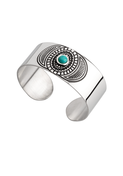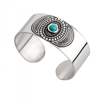 Changez complètement de décor avec notre Manchette Houston Petit Modèle avec Pierre. On y retrouve un motif unique aux inspirations amérindiennes, afro-américaines et hispaniques sur un jonc plat ouvert orné d'une pierre. Elle vient apporter une petite touche de couleur à la pièce.
