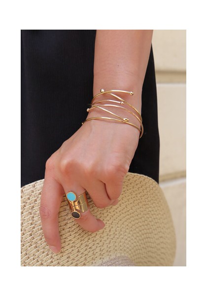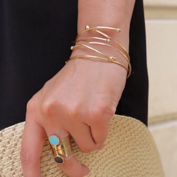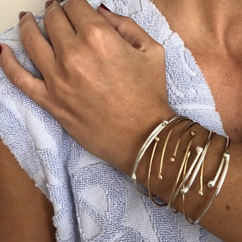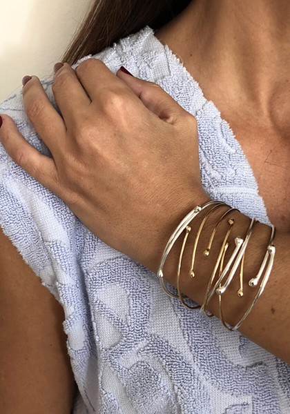 Notre Bracelet Milos Or Jaune se constitue de un bracelet ouvert, à porter seul ou en accumulation. Il est également disponible en argent par trois.