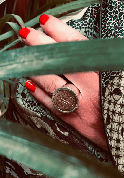 Il est possible de réaliser une gravure sur le dessus de la bague comme des initiales, un blason familial, des lettres entrelacées ou un emblème traditionnel. Elle est également disponible en version plus petite.