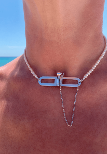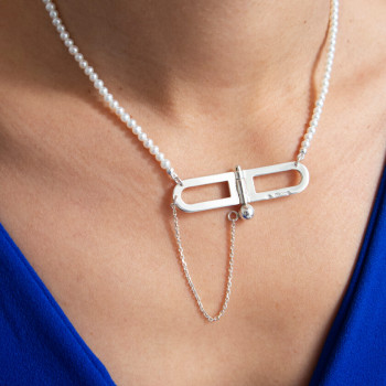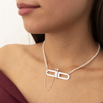 Notre Collier Duplex à une singularité qui lui est propre : ce bijou repose sur ce fermoir joliment articulé autour d'une tige en torsion et une petite chainette.