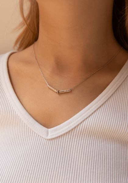 Les combinaisons sont infinies : jouez sur les longueurs, les matières et les mots pour créer un collier unique et personnel.