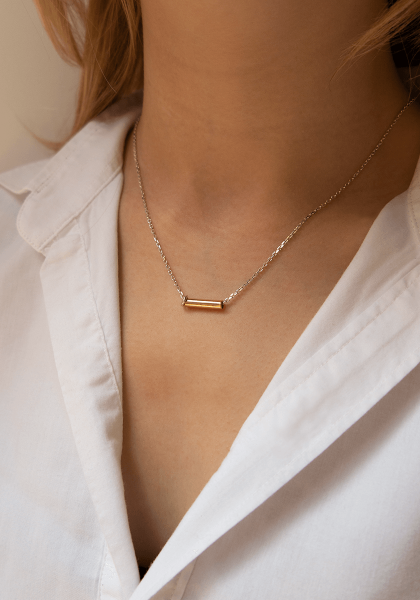 Le Collier Tube, imaginé par Marc Deloche, est un bijou à composer soi-même pour créer une pièce unique, à son image. En sélectionnant ce bijou, vous choisissez la chaine en or jaune que vous souhaitez.