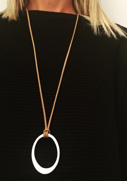 Notre Pendentif Anneau Oval séduit par son design minimaliste de l'anneau et qu'il est possible de porter de différentes façons et à différentes hauteurs.
