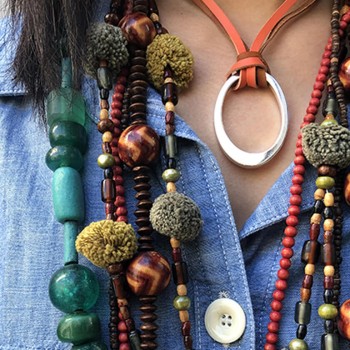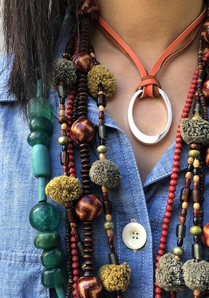 • Monté sur un cordon épais en coton enduit de la couleur de votre choix avec des noeuds coulissants, sur demande sur lien en cuir plat avec un noeud plat.