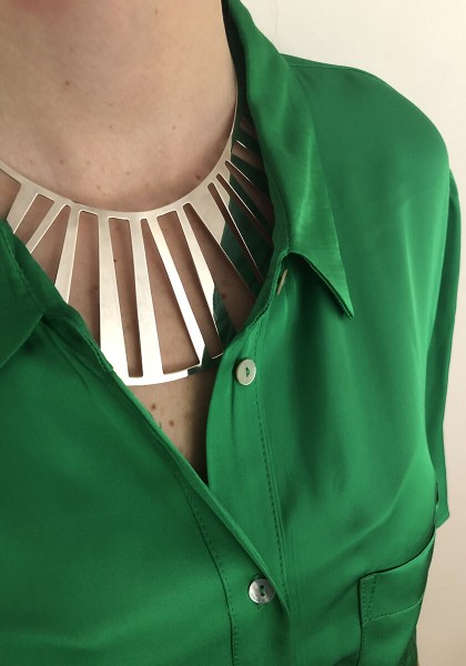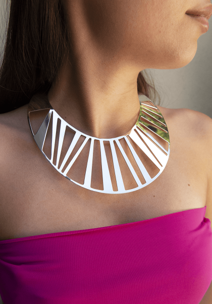 Notre Collier Plastron Zèbre est une pièce emblématique qui attire le regard avec ses rayures graphiques inspirées de l’animal. Réalisé en argent, ce plastron audacieux allie puissance et élégance, parfait pour sublimer un décolleté ou transformer un look élégant.