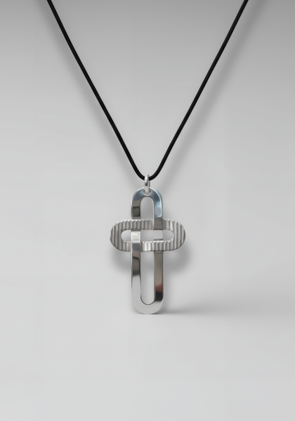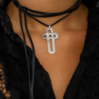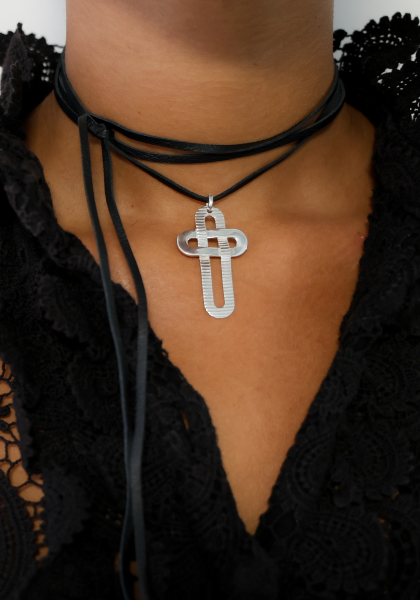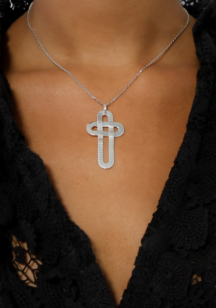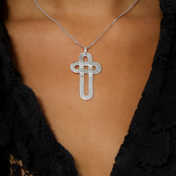 Notre pendentif Croix Nodo Marin naît de deux pièces d’argent qui s’entrelacent avec grâce pour former une croix contemporaine. L’une d’elles, délicatement crantée, évoque les lignes d’une marinière et apporte une modernité subtile au bijou.