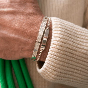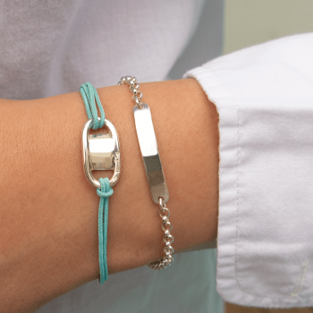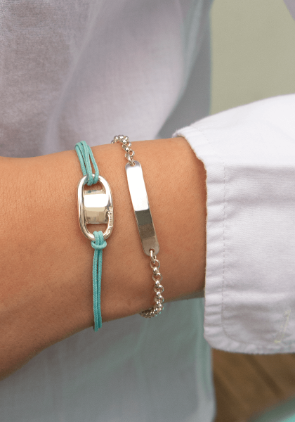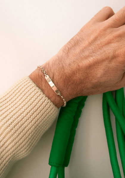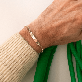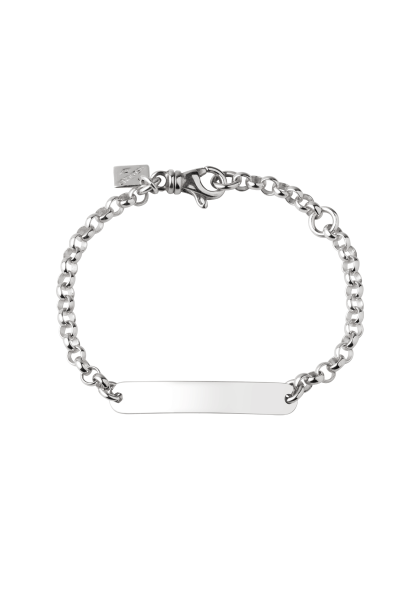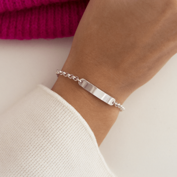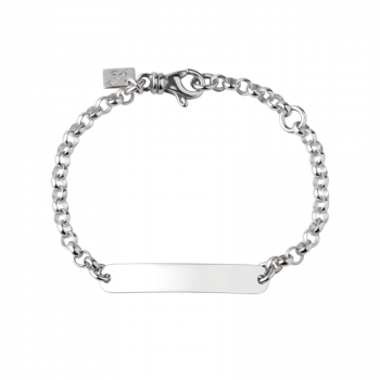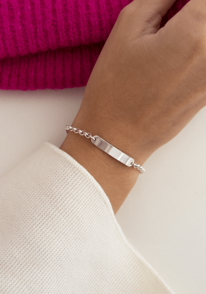 Featuring an elegant rectangular plate with rounded and slightly curved edges, this personalisable bracelet can be engraved with a first name, a date or a symbolic word, making it a unique and personal piece of jewellery.