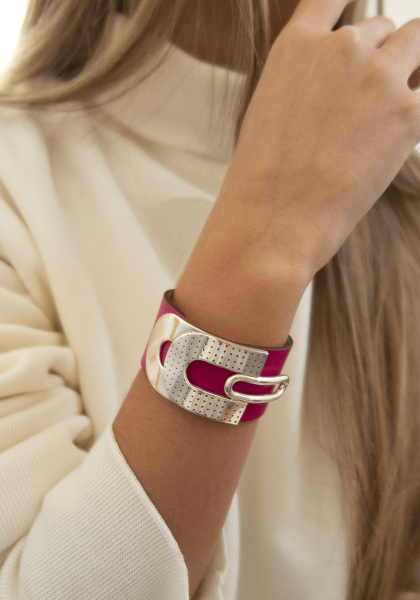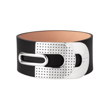 Our Cheetah Nendo Leather Bracelet adorns your wrist with a dotted geometric silver pattern, subtly combined with a leather strap. Designed as a unisex piece of jewellery, it adapts to all tastes thanks to its wide interchangeable leather strap, allowing you to vary the colours to suit your mood.