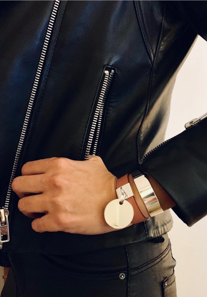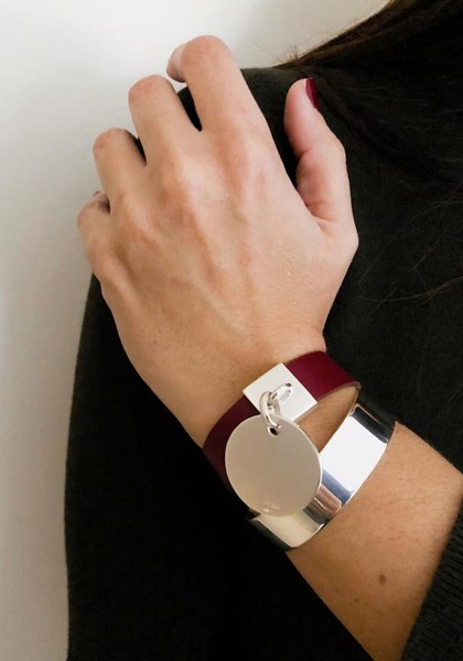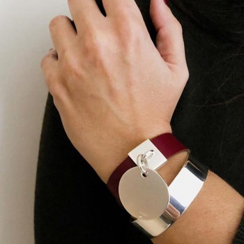 Solid silver and leather bracelet