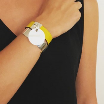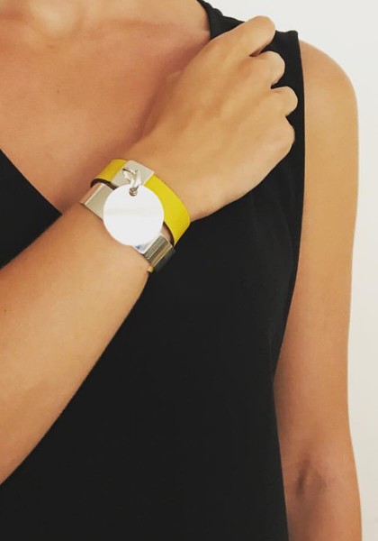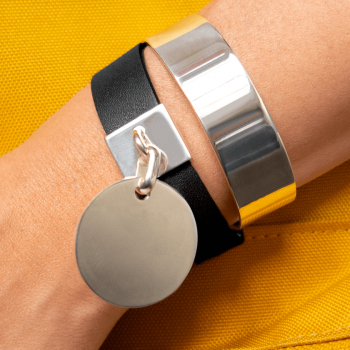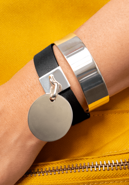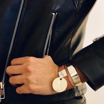 Our Carioca Leather Bracelet combines a flat silver bracelet with a leather strap in the colour of your choice. Its silver case highlights the iconic Marc Deloche medallion, which is mobile and luminous.