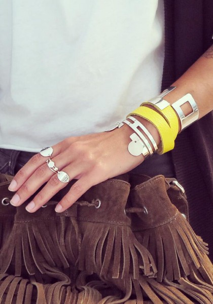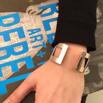 Our Bonnie Cuff Bracelet is an open bangle in solid silver with two squares pierced into the top.
