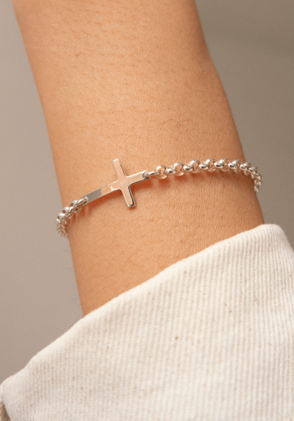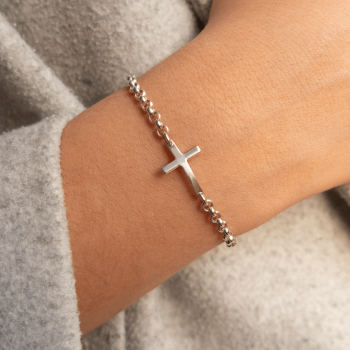 Discover our elegant Oval Jaseron Chain Bracelet in silver, a timeless piece of jewellery that suits everyone. Comprising a silver jaseron chain adorned with an  elegant cross and a lobster clasp, this bracelet embodies refinement and understated elegance.