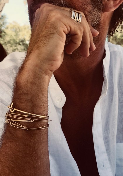 With its sober, elegant style, this mixed jewellery piece is equally suited to men and women, adapting to every occasion and every style. A timeless accessory to be worn alone or combined with other bracelets for a modern layered effect. Also available in sterling silver.