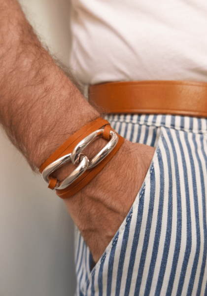 Our Maxi Bean Cord Bracelet is made up of two interlocking oval links, mounted on a cord in the colour of your choice. This adorable unisex piece of jewellery will follow the movement of your wrist divinely.