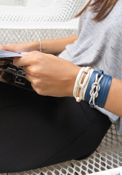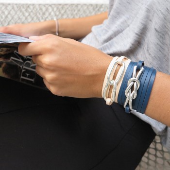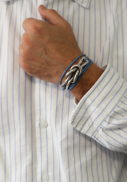 Our Large Sailor's Knot Cord Bracelet is a solid silver piece representing a flat sailor's knot. It is mounted on a leather cord with a flat knot or on a coated cotton cord lined with a sliding knot.