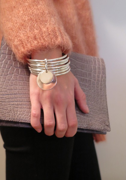 Our Weekly Seven Bangle Bracelet is a delicate reinterpretation of one of the House's iconic pieces. Composed of seven silver bangle bracelets joined by a two medals with different diameters, it symbolises each day of the week, inviting you to celebrate the little moments in everyday life.