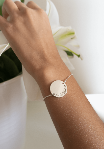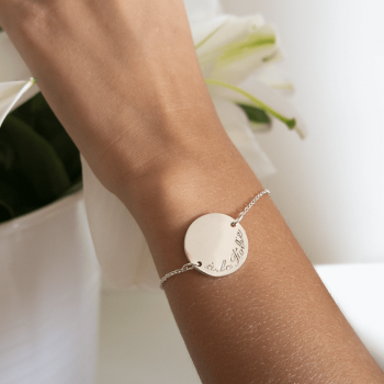 This bracelet can also be personalised with the engraving of your choice. Also available in gold or as a choker.
