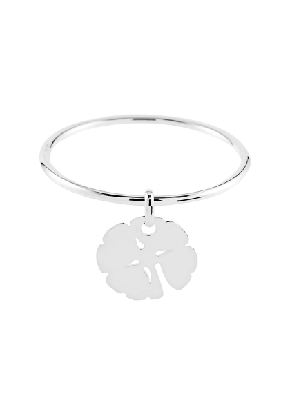 Our Clover Leaf Bangle Bracelet is made from round wire and adorned with a mobile medal representing a four-leaf clover, a universal symbol of luck and hope.