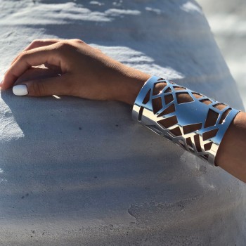 Our Giraffe 10 Cuff Bracelet is embellished with irregular, finely pierced patterns reminiscent of a giraffe's distinctive spots.