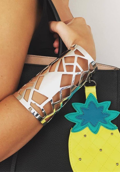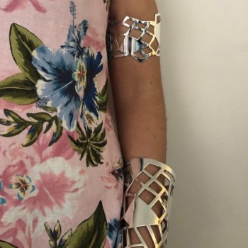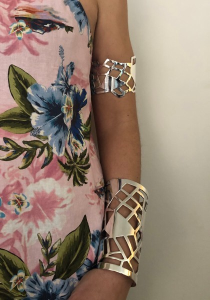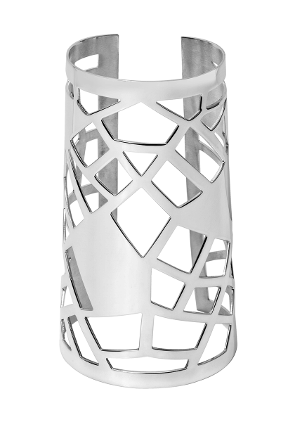 Our Giraffe 13 Cuff Bracelet is embellished with irregular, finely pierced patterns reminiscent of a giraffe's distinctive spots.
