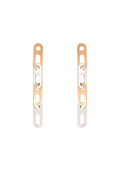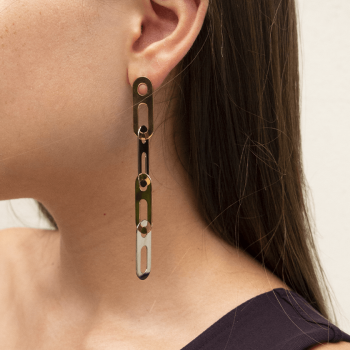 Immerse yourself in the world of the Circe Collection with our Circe Two-Tone Gold 4-Link Earrings from the Jewellery Collection number 3. These earrings embody elegance and boldness with their two-tone design in yellow and grey gold.