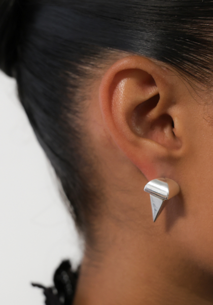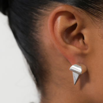 From the Stud Collection, our Small Intertwined Kerinos Stud Earring, in the shape of a tapering stud topped by a square pyramid with sharp edges, asserts an architectural, almost totemic aesthetic.