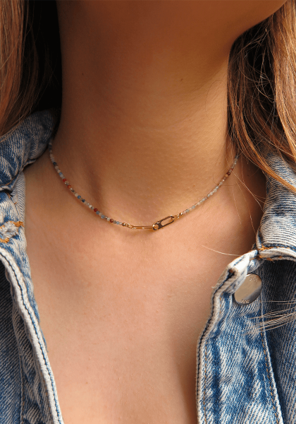 Yellow Gold XS Circe Cuff Multi-coloured Beads Necklace