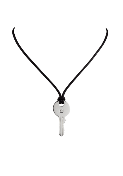 Our Large Key Pendant perfectly embodies the metaphor ‘opening up new possibilities’ with its silver key mounted on a thick coated cotton cord.