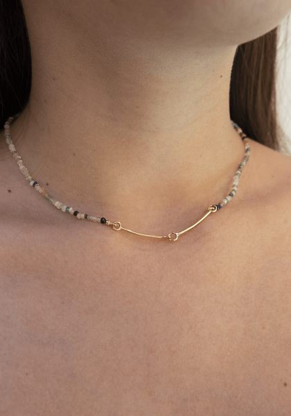 Composed of fine faceted stones, our Yellow Gold and Multicolored Beads Leon Necklace ends with a clasp of two yellow gold hooks. Slipped into one and the other, these small hooks constitute all the beauty and the particularity of this creation. The clasp is not hidden in the back! On the contrary, he exposes himself to everyone's view to stir up jealousies.