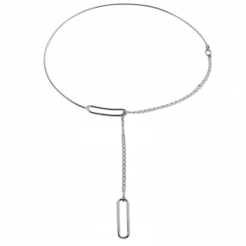 Our Astrid choker is an elegant and unique piece of jewellery, consisting of a fine chain combined with two oval silver rings. This model combines a rigid part and a flexible part, with a sliding mechanism for a discreet fit around the neck.