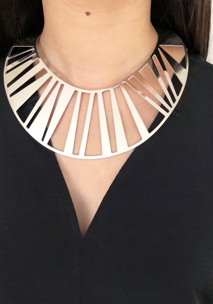 Our Zebra Bib Necklace is an iconic piece that catches the eye with its graphic stripes inspired by the animal. Crafted in silver, this bold bib necklace combines power and elegance, perfect for enhancing a neckline or transforming an elegant look.