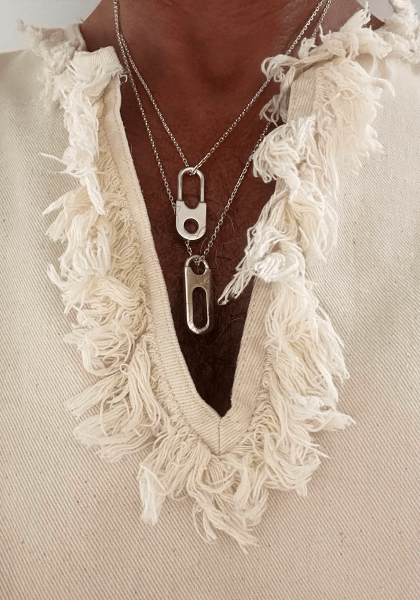 • Mounted on a nylon cord in the colour of your choice or on the chain of your choice (shown in the photos on a cable chain)