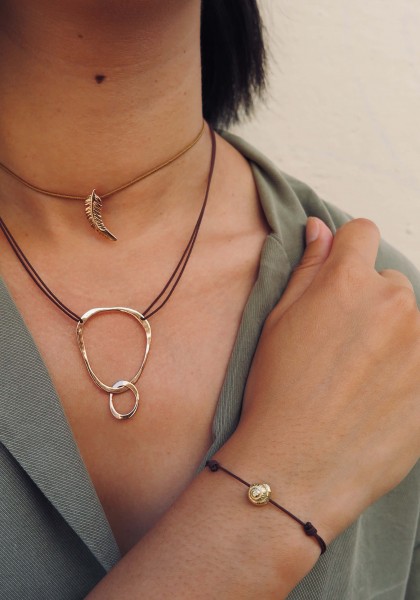 Our Pink Gold Alice Pendant is a delicate and timeless creation: it features two stylised rings intertwined with each other. Crafted in 18-carat rose gold, it can be worn on a cord in the colour of your choice, for a touch of elegance and personalisation.