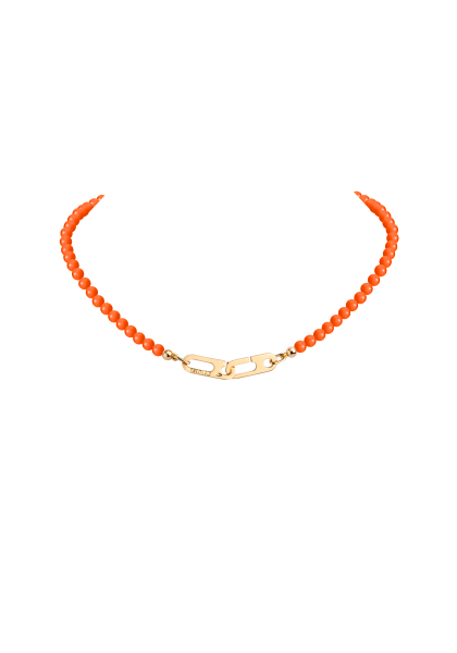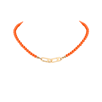 Inspired by our Number 3 Jewellery Collection and our Circe Collection, our Yellow Gold XS Circe Cuff Coral Beads Necklace mesmerises with its small Coral beads combined with 18-carat yellow gold cuffs to create a summery piece.