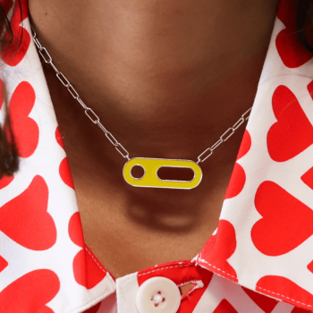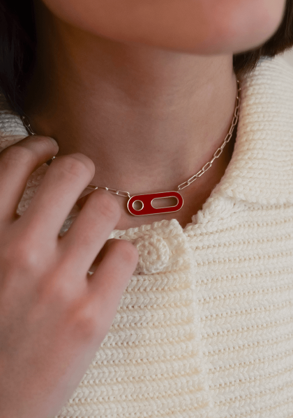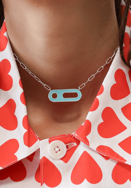 Our Circe Color Choker Necklace embodies subtlety and refinement, revisiting the essence of the Circe Collection with a vibrant splash of colour. The lacquered Circe hoop is suspended from a delicate chain, giving the choker a timeless lightness and grace.