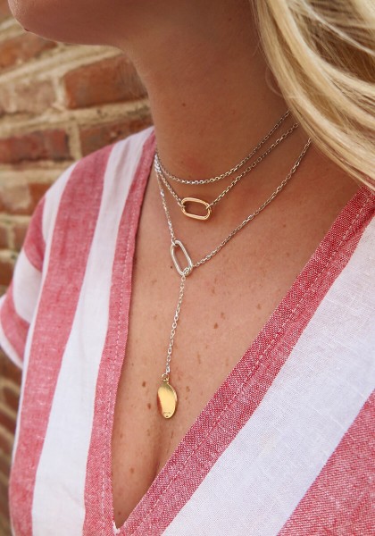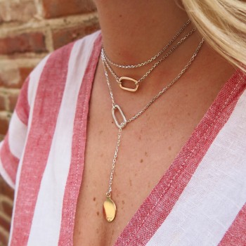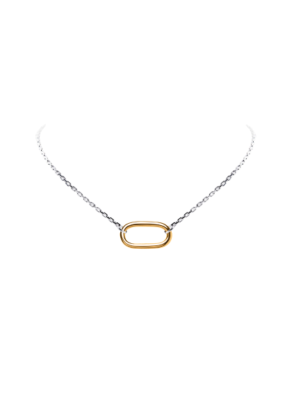 Our Lea Gold and Silver Choker Necklace, with its iconic central link in delicately polished gold, enhances the neck with discretion and refinement. The distinctive feature of this model is the subtle contrast between silver and gold, giving it a modern touch. It's part of the Lea Collection, a line of contemporary jewellery that celebrates the strength of pure forms and the timeless elegance of minimalist design.