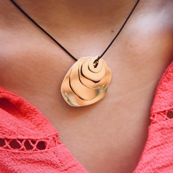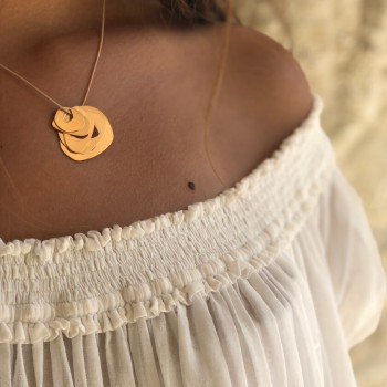 Gold 18k pendant with 5 rings of asymmetrical shapes to wear on an adjustable cotton tie.