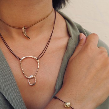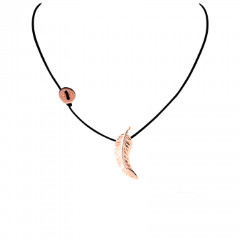 Our Pink Gold Button Feather Pendant is a discreet and elegant piece of jewellery, mounted on an adjustable chain with a sliding knot system and a 18-carat pink gold button clasp.