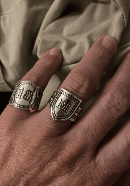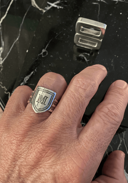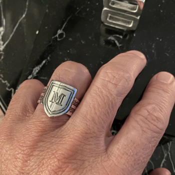 Our Cuba Letter Ring is a coat of arms-style cigar ring, engraved with the letter of your choice.