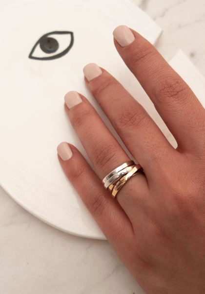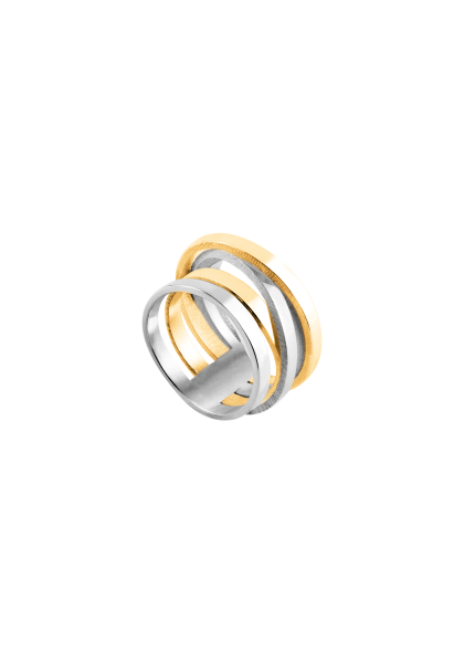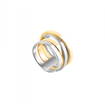 Five square wires elegantly intertwine to form our Small Yellow Gold and Silver Spiral Ring. Of these five rings, two stand out with their golden shine in 18-carat yellow gold. A sculptural and refined piece of jewellery, signature Marc Deloche, which naturally follows the curve of the finger.