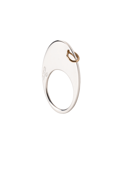 True to Marc Deloche's signature design, our Osiris Yellow Gold and Silver Ring is unique in that it is cut from a plate like a piece of a puzzle. Made from solid silver, it features a gold ring on the side, illustrating both the mix of materials and the mobility that are recognizable elements of Marc Deloche's creations.