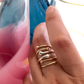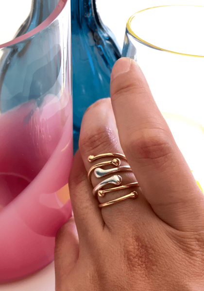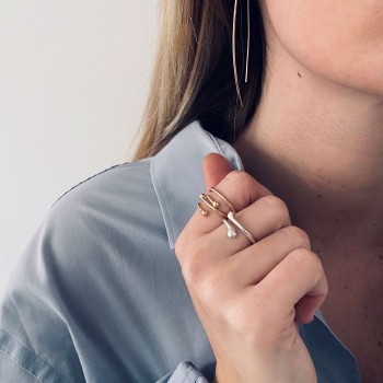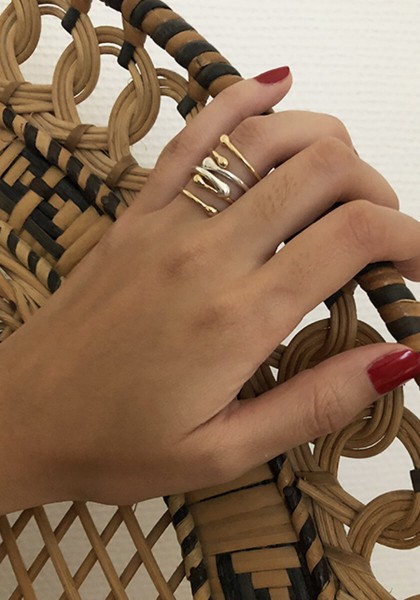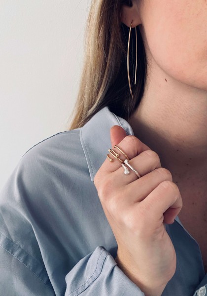 Our Yellow Gold and Silver Milos Ring is a trio of rings with delicate, refined curves with two in 18-carat yellow gold and one in sterling silver. Named after the Greek island of Milos in the Cyclades archipelago, these rings are available in several combinations: all gold, all silver or a combination of gold and silver.