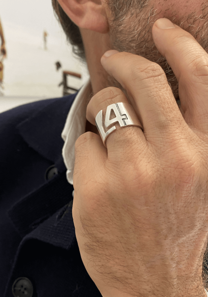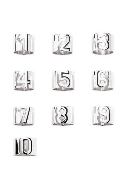 Our Casino Number Ring is an open ring adorned with numbers and figures precisely cut into its iconic wide band.
