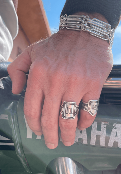 Our Santiago Number Ring is a rectangular coat of arms-style cigar ring, decorated with a unique and personalized motif of the number of your choice.